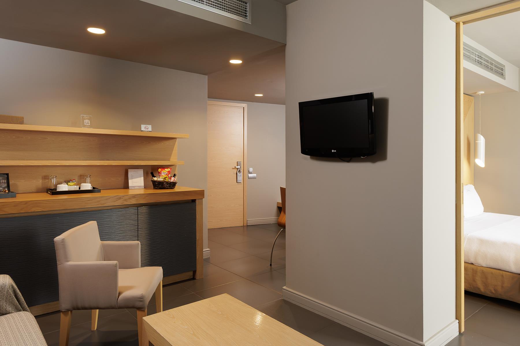 Με επιφάνεια περίπου 40 τμ., η Junior Suite Sea View προσφέρει τον ιδανικό συνδυασμό χώρου και ιδιωτικότητας για οικογένειες ή ζευγάρια που αναζητούν περισσότερη άνεση. Περιλαμβάνει ξεχωριστή κρεβατοκάμαρα με king size ή δύο μονά COCO-MAT κρεβάτια, καθώς και ευρύχωρο καθιστικό με καναπέ που μετατρέπεται σε δύο μονά κρεβάτια. Οι δύο χώροι χωρίζονται με πόρτα για επιπλέον αυτονομία. Το μπάνιο διαθέτει ντους με στήλη υδρομασάζ, ενώ η καφετιέρα Nespresso σας προτρέπει να απολαύσετε έναν αρωματικό εσπρέσο από την άνεση του δωματίου σας. Το ιδιωτικό μπαλκόνι προσφέρει υπέροχη θέα στο κήπο, τη πισίνα και το Αιγαίο Πέλαγος. Τα δωμάτια αυτής της κατηγορίας εκτείνονται στο ισόγειο και στον πρώτο όροφο του ξενοδοχείου μας.